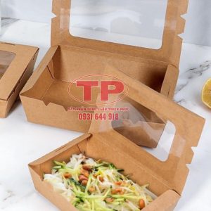 Hộp giấy nắp kính đựng salad trộn – hộp giấy đựng thức ăn mang đi – Hộp giấy đựng cơm take away